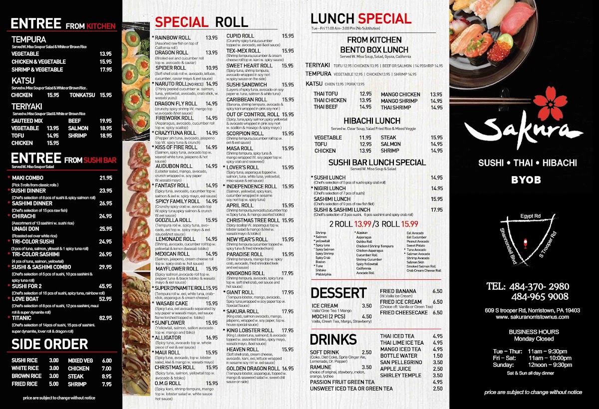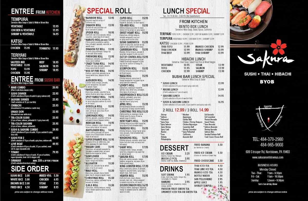 Introducing the Menu at Sakura Hibachi Sushi & Thai Restaurant